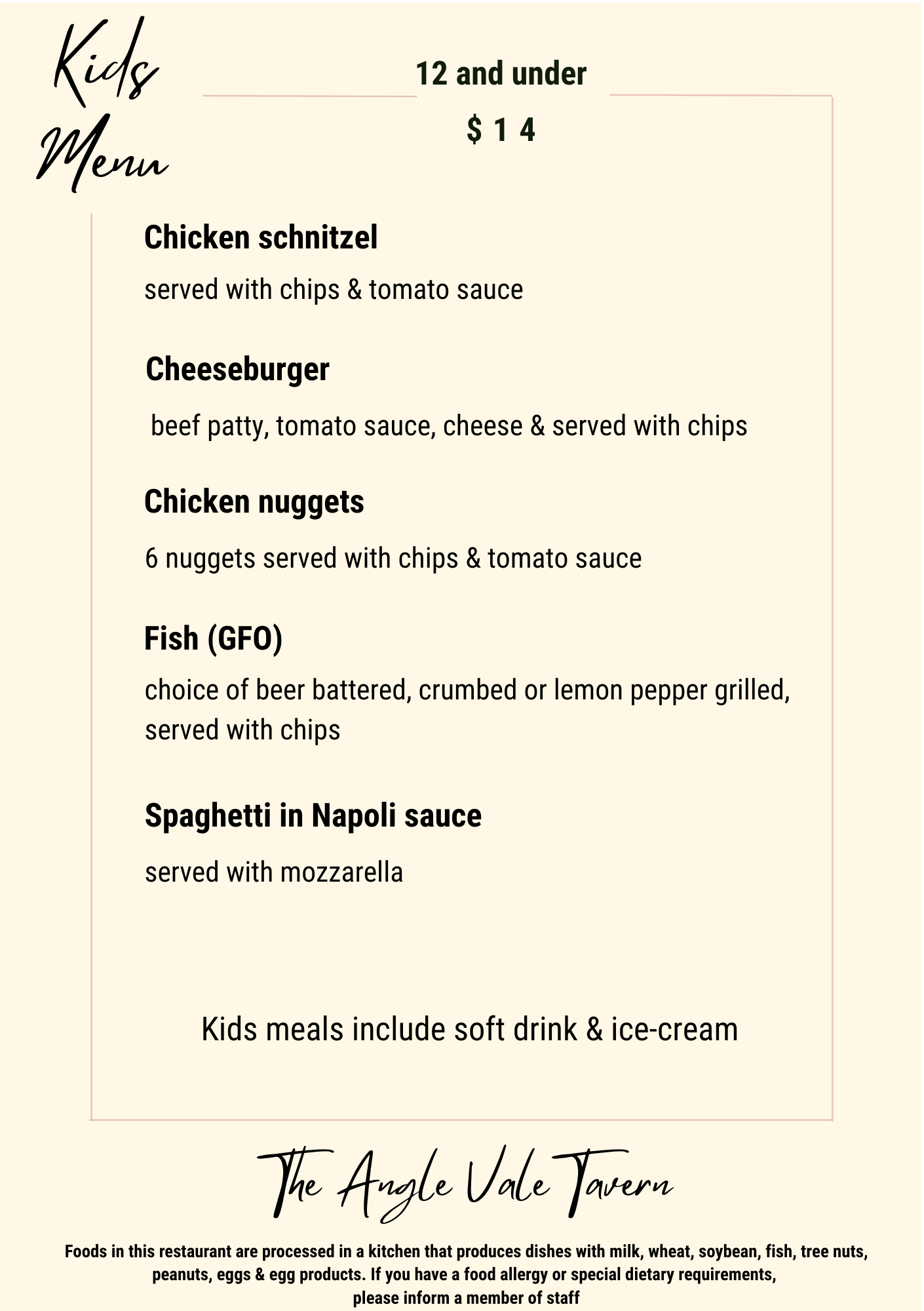 Angle Vale Tavern offers an informal dining experience which has become a favourite for locals and visitors alike.